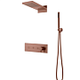 Boheme Fusion 130-BRB — это выбор для тех, кто хочет превратить ежедневный душ в настоящий ритуал релаксации. Представьте, как после долгого дня вы входите в ванную, наполненную мягким светом, и включаете тропический душ. Тёплая вода стекает по вашему телу, смывая усталость и стресс. Ручной душ позволяет легко смыть шампунь или просто насладиться направленным массажем. А когда вы закончили, система скрывается за стеной, оставляя лишь чистые линии и элегантный бронзовый смеситель.
