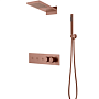 Созданная для тех, кто ценит совершенство во всем, эта система сочетает в себе ретро-элегантность и современные технологии. Брашированное медное покрытие не только выглядит благородно и респектабельно, но и сохраняет свой блеск на протяжении многих лет, придавая вашей ванной комнате особый шарм.