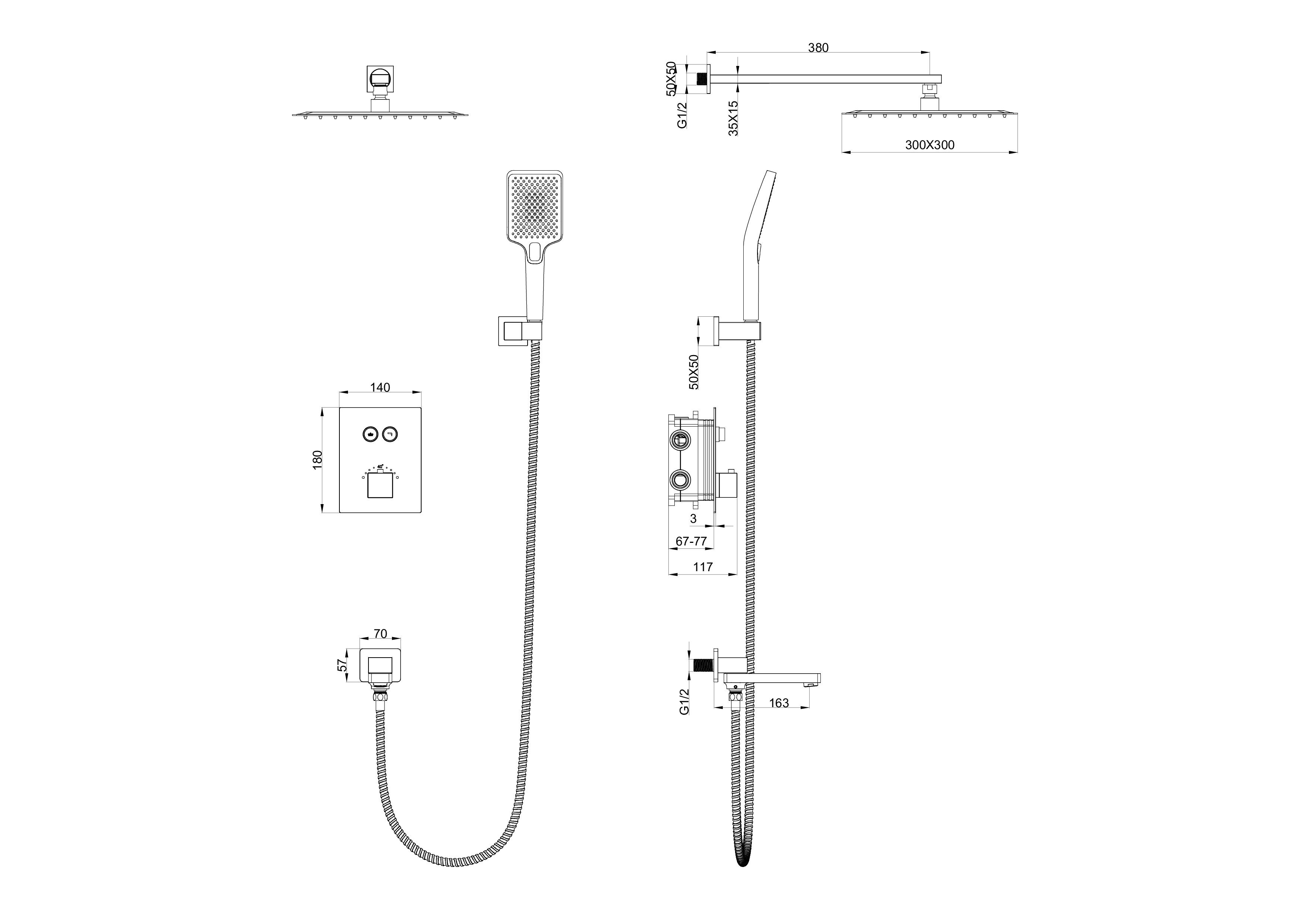 Корпус из высококачественной латуни с глянцевым хромовым покрытием не только выглядит престижно, но и устойчив к коррозии и ежедневному износу. Современный квадратный дизайн органично впишется в любой интерьер — от минимализма до хай-тек. Скрытая часть системы входит в комплект, что упрощает установку и обеспечивает аккуратный вид.