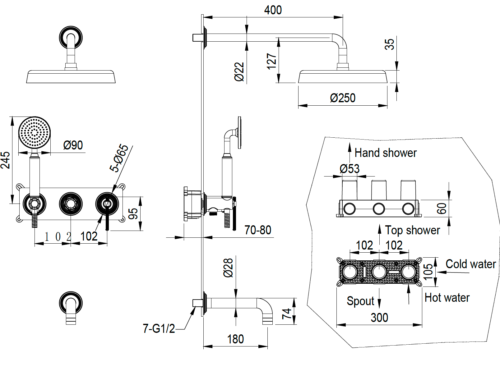 Душевая система Boheme Eterna 174-2-CR с изливом