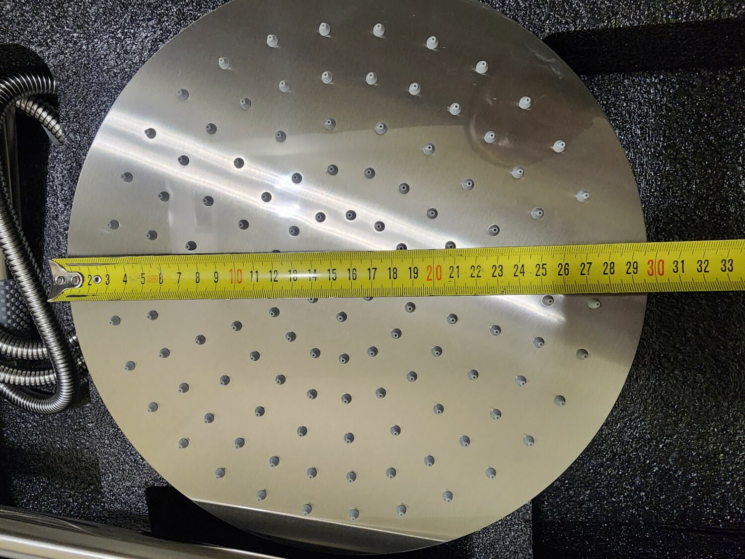 В комплекте вы найдёте всё необходимое для монтажа и эксплуатации: смеситель с керамическим картриджем для плавной регулировки температуры и напора воды, тропический душ для расслабляющего массажа, ручной душ с металлическим шлангом для точечного ополаскивания, а также держатель для душа и девиатор для переключения между режимами. Шланг выполнен из металла, что гарантирует долговечность и защиту от перекручивания.