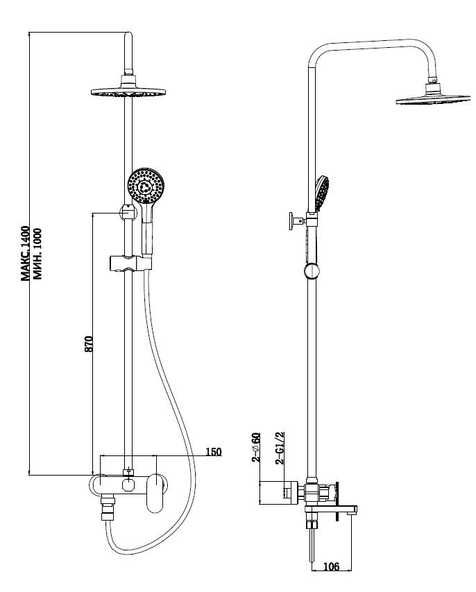 Управление происходит с помощью удобного рычажного смесителя, оснащенного керамическим картриджем, что гарантирует плавную регулировку температуры и напора воды без подтеков. Подводка стандартная — 1/2", что упрощает монтаж даже в уже обустроенных ванных комнатах.