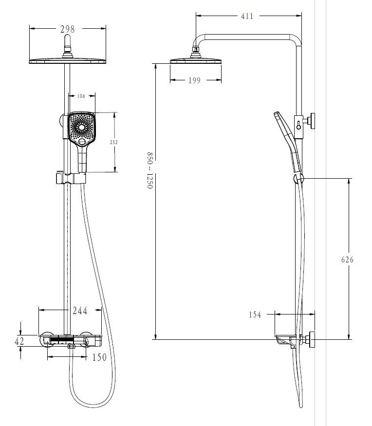 В комплекте — три режима лейки, которые позволят настроить напор и интенсивность струи под ваше настроение: от мягкого дождя до бодрящего массажа. Верхний душ размером 30х20 см создаёт ощущение настоящего тропического ливня, а ручной душ с длинным шлангом (150 см) обеспечит удобство при мытье волос или уборке ванной. Девиатор позволяет легко переключаться между режимами, а наличие излива для наполнения ванны делает стойку универсальной для любых гигиенических процедур.