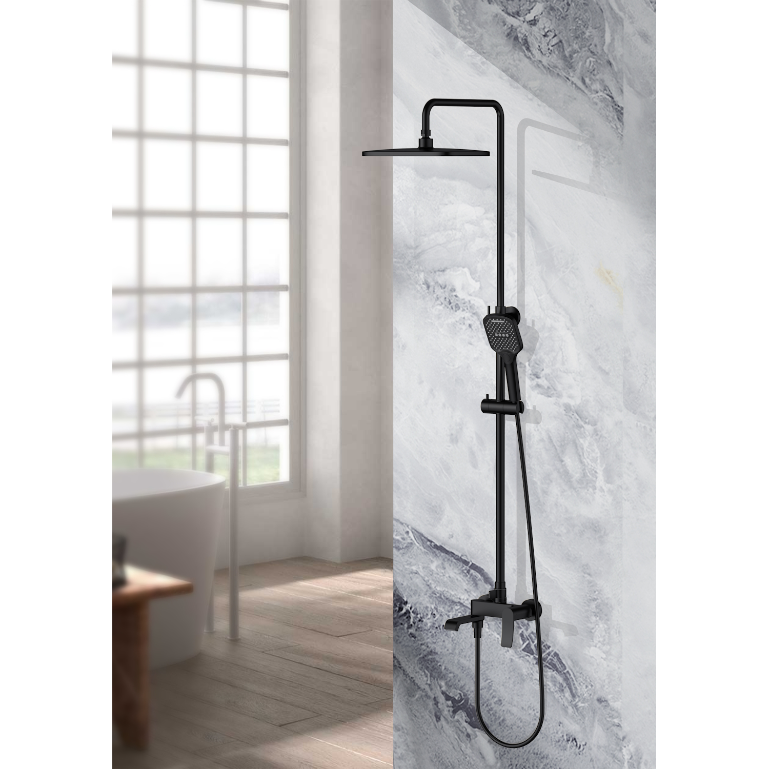 Эта модель идеально подойдёт для семей с детьми — ручной душ с регулируемым напором удобен для купания малышей, а тропический душ станет любимым атрибутом для подростков и взрослых. Также стойка станет отличным выбором для гостевых ванных комнат, где важно сочетание стиля и практичности.