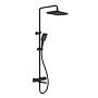 Душевая стойка выполнена из высококачественной нержавеющей стали, что гарантирует долговечность и устойчивость к коррозии. Черное матовое покрытие придаёт изделию элегантный вид, идеально вписывающийся в современные дизайны ванных комнат.