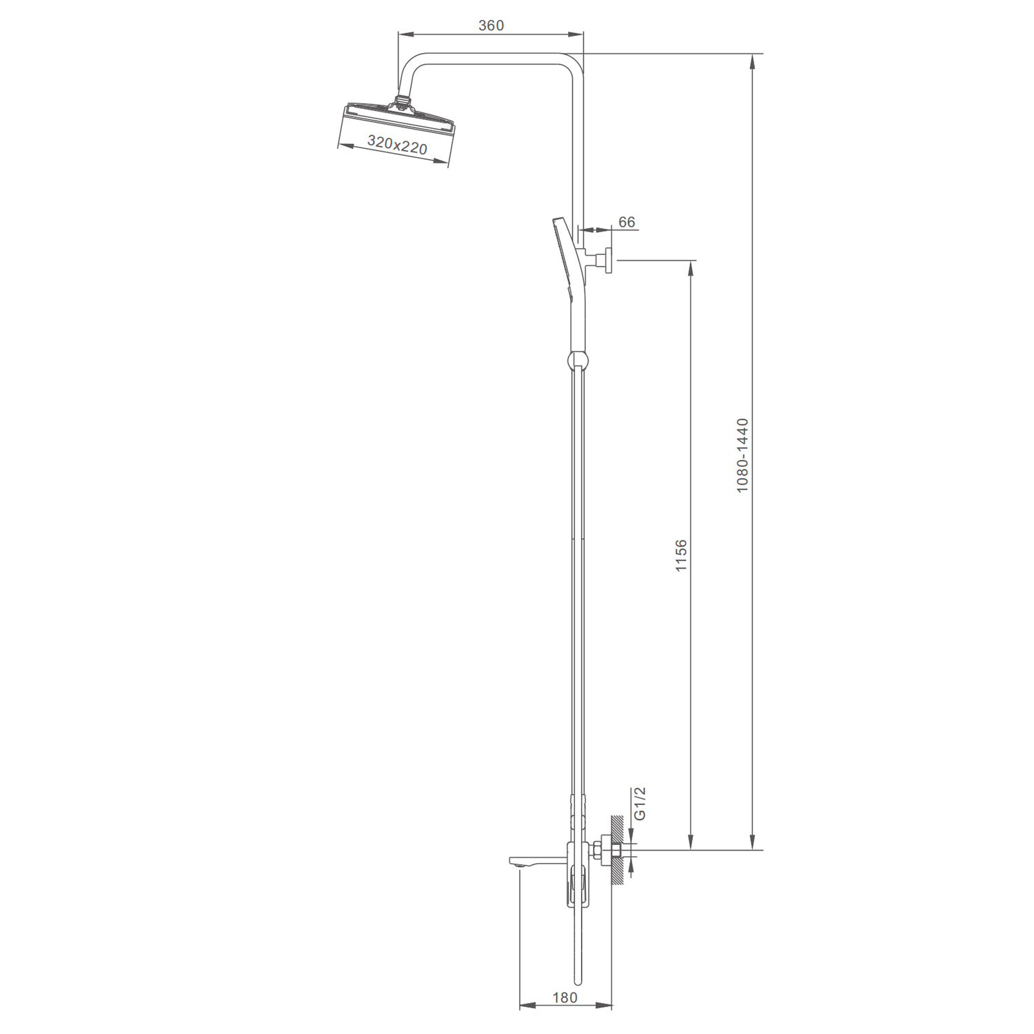 Высота изделия — 36.7 см, глубина — 64.5 см, что позволяет комфортно расположить все элементы: тропический душ, ручную лейку и излив для ванны. Материал — латунь — гарантирует прочность и устойчивость к коррозии даже при частом контакте с водой. Управление — рычажное, поэтому регулировать напор и температуру можно плавно и без усилий.