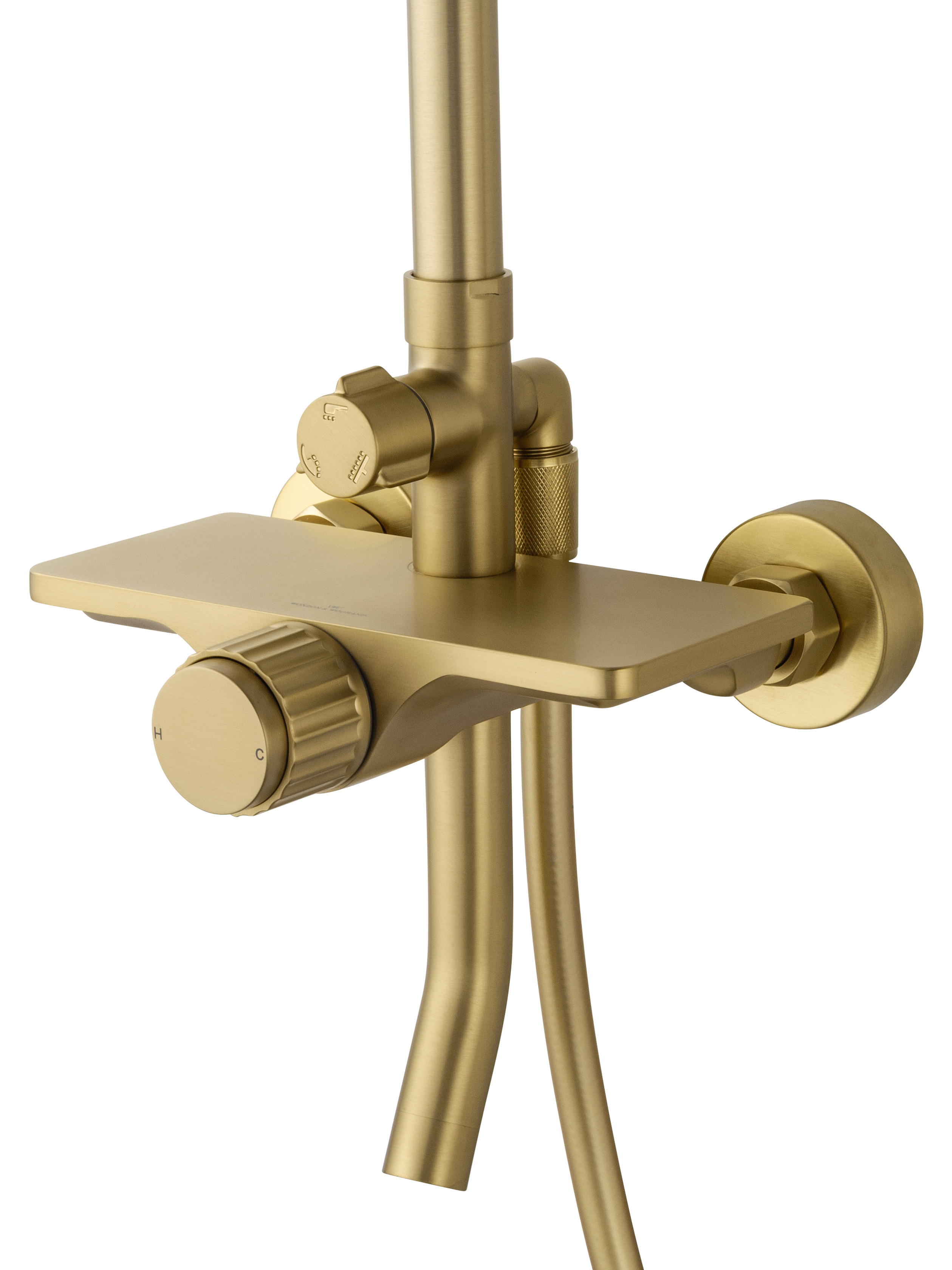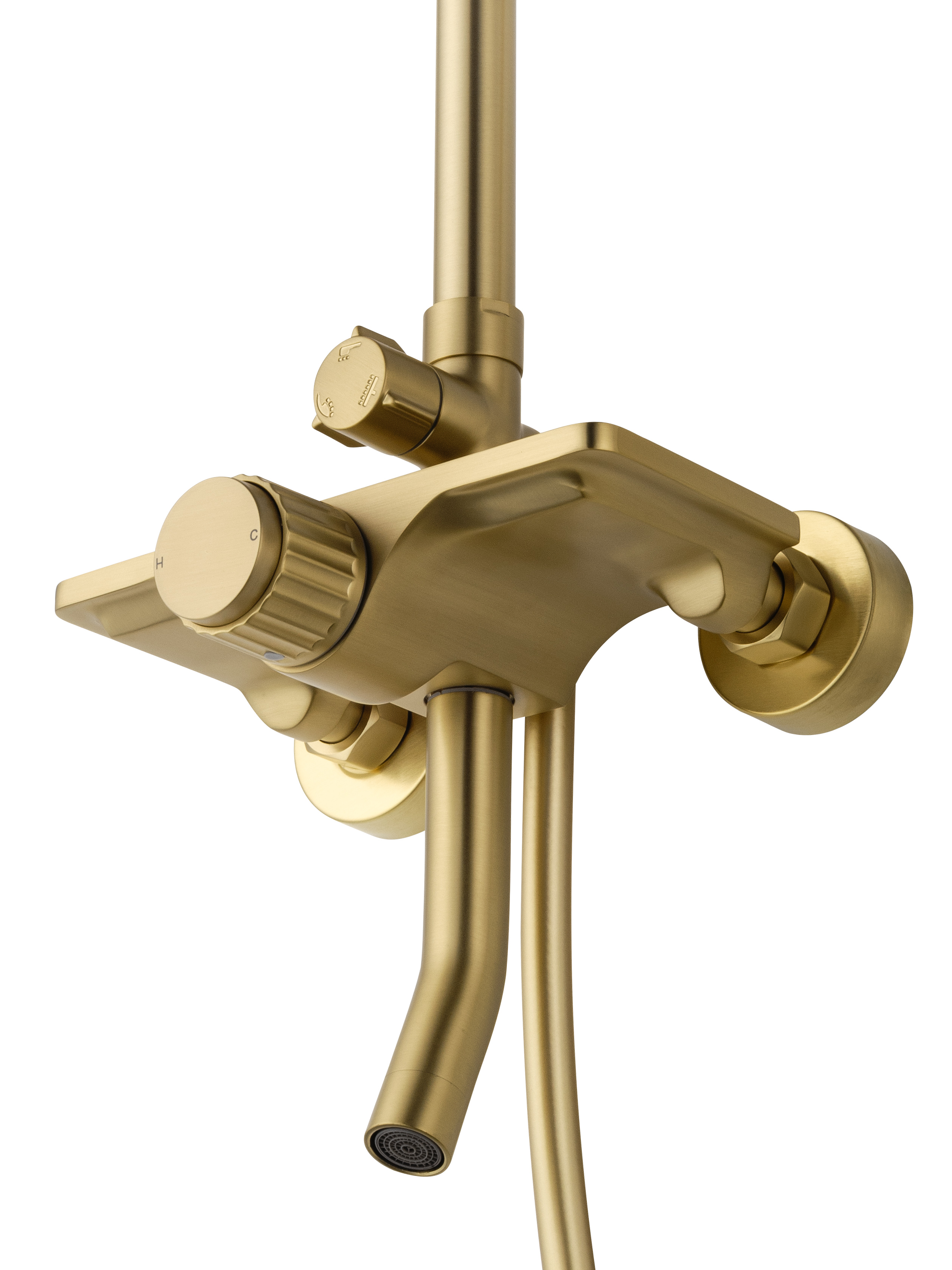 Представьте, как вы возвращаетесь домой после долгого дня, включаете душ и оказываетесь под мягким тропическим дождём, а регулировка напора позволяет настроить идеальный массаж для снятия усталости. Каждый элемент стойки работает безупречно, а её золотистый оттенок создаёт атмосферу тепла и уюта. Это не просто сантехника — это часть вашего комфорта и стиля жизни.