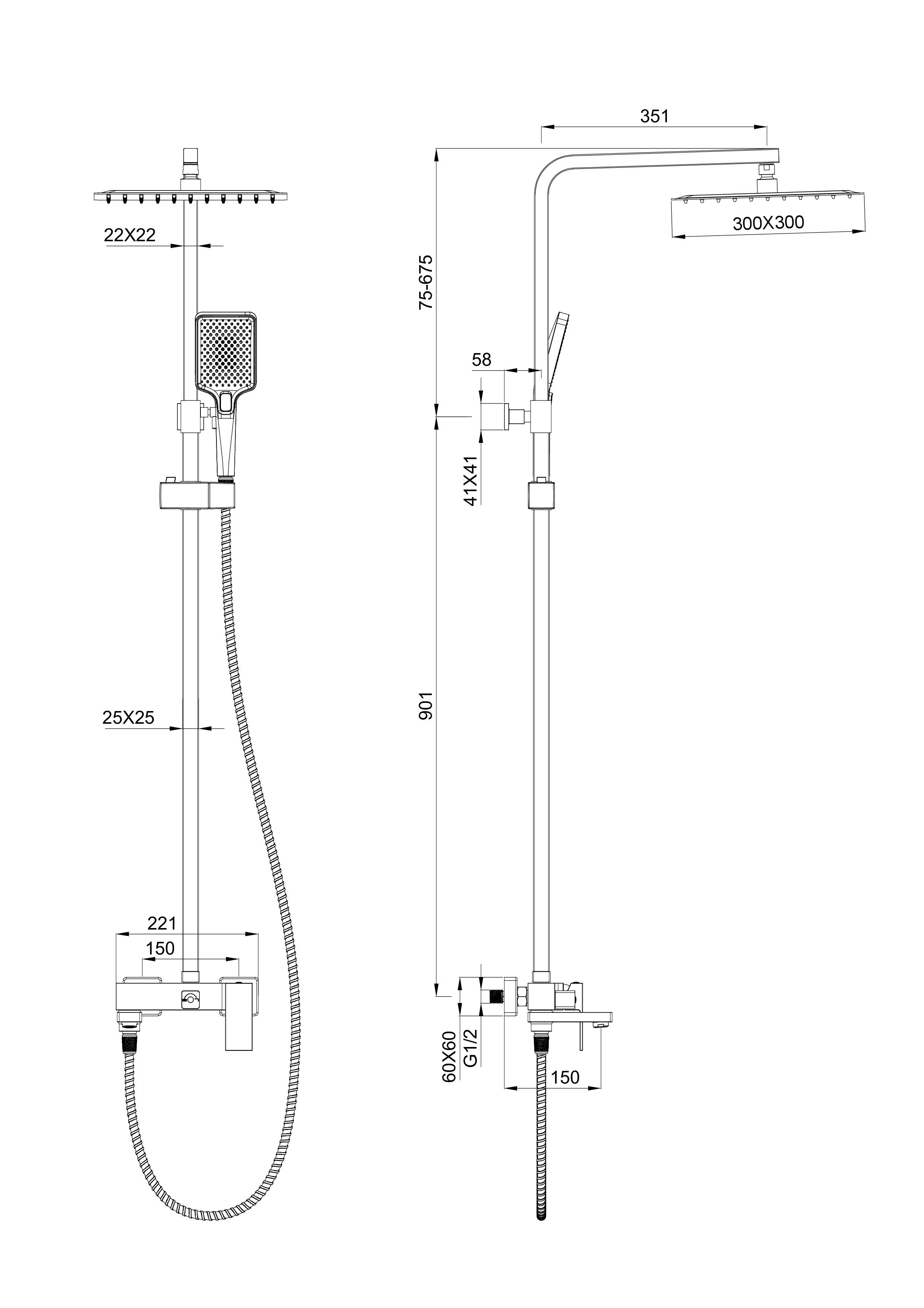 Высота стойки 165 см позволяет использовать её как для ванн, так и для душевых кабин. Благодаря компактным габаритам (22,1 x 50,1 см) она идеально впишется даже в небольшие помещения, не загромождая пространство. Современный квадратный дизайн коллекции Cube придаст вашей ванной комнате лаконичный и стильный вид.