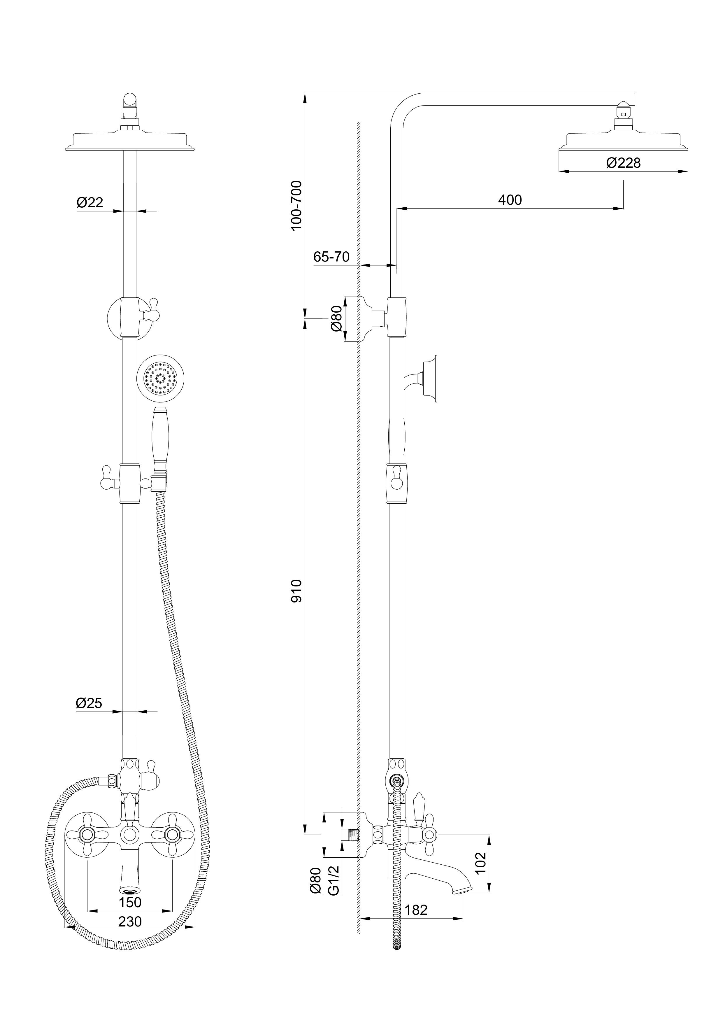 Очень малоДушевая стойка Wonzon & Woghand Retro WW-88739020-MB — воплощение немецкой точности и вечной элегантности