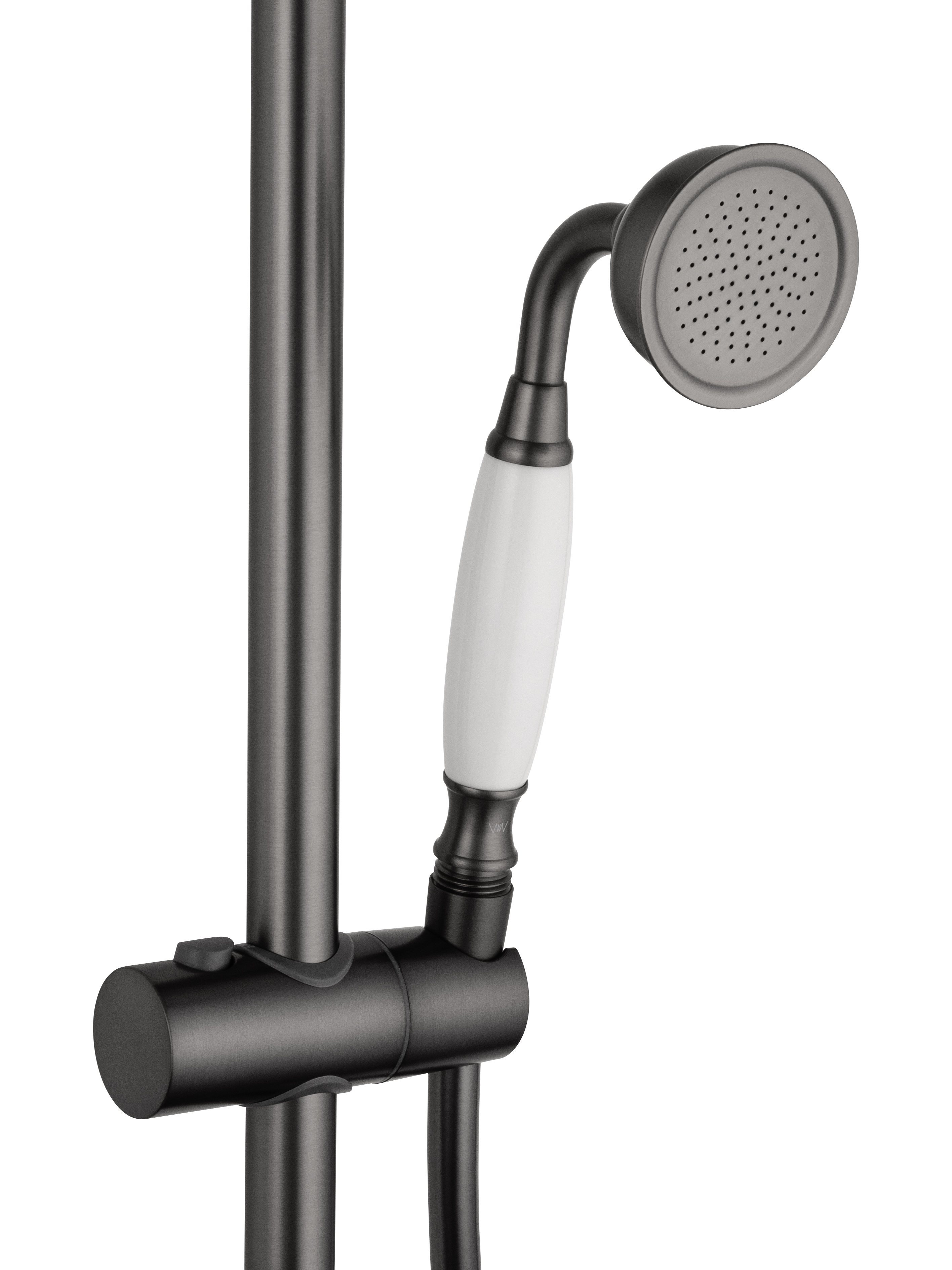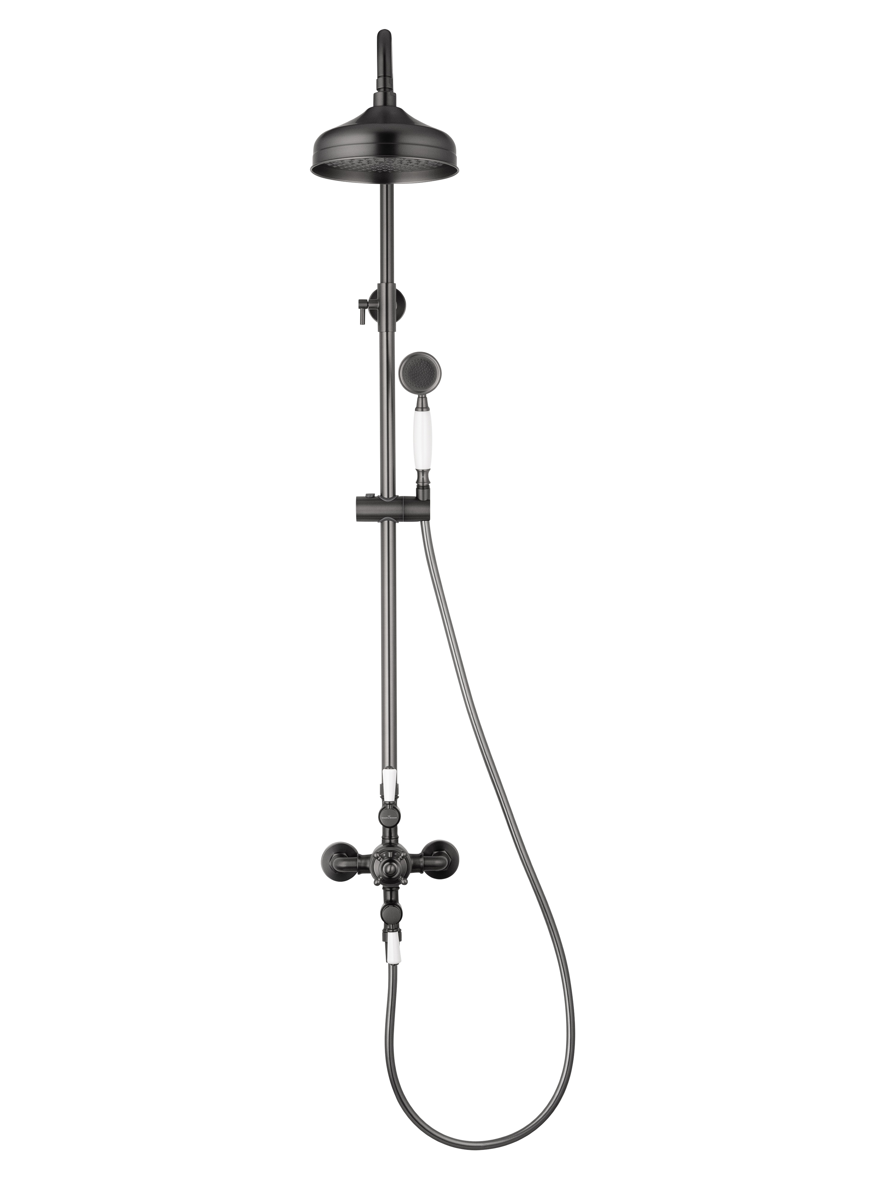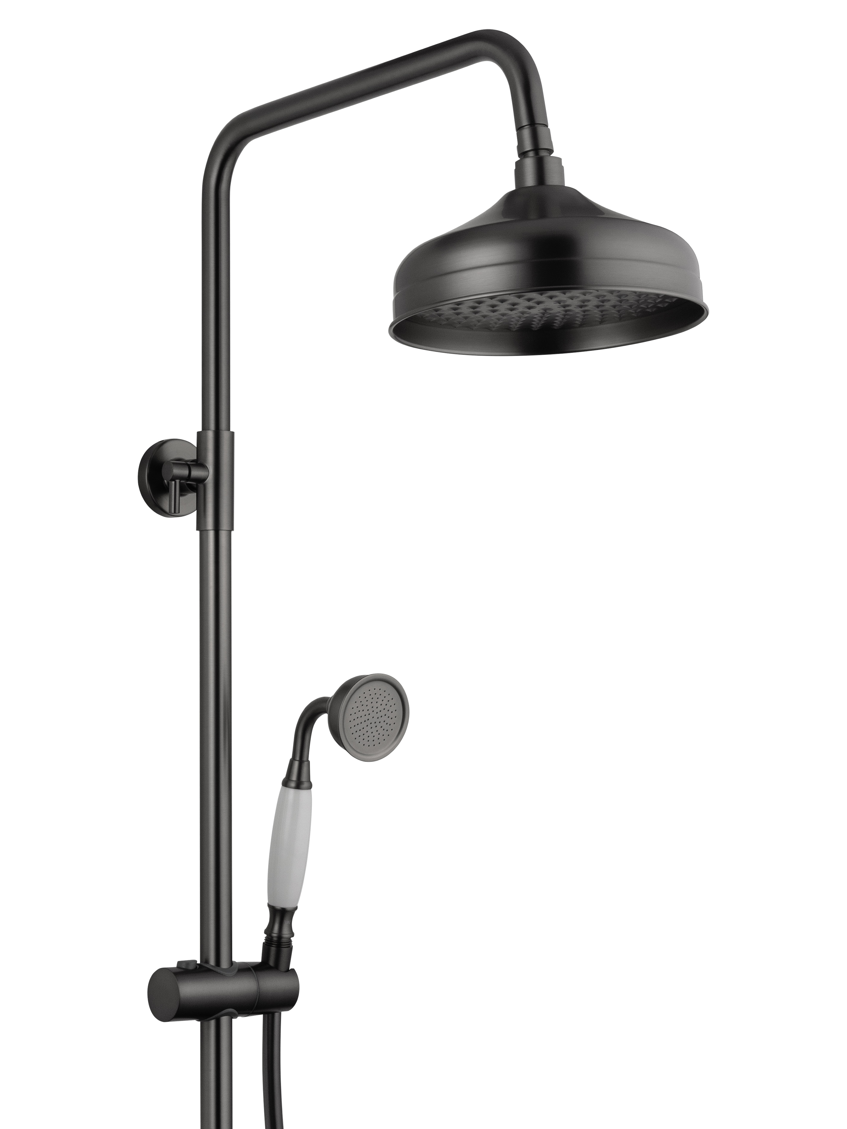 Душевая стойка выполнена из высококачественной латуни с брашированным покрытием цвета оружейной стали. Этот материал не только придаёт изделию презентабельный вид, но и обеспечивает долговечность, устойчивость к коррозии и лёгкость ухода. Коллекция Retro гармонично впишется как в классический, так и в современный интерьер ванной комнаты.
