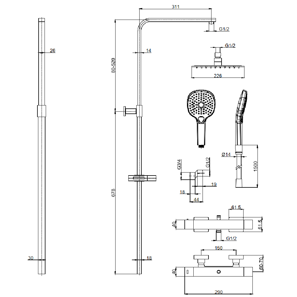 - Тип: душевая стойка с термостатом