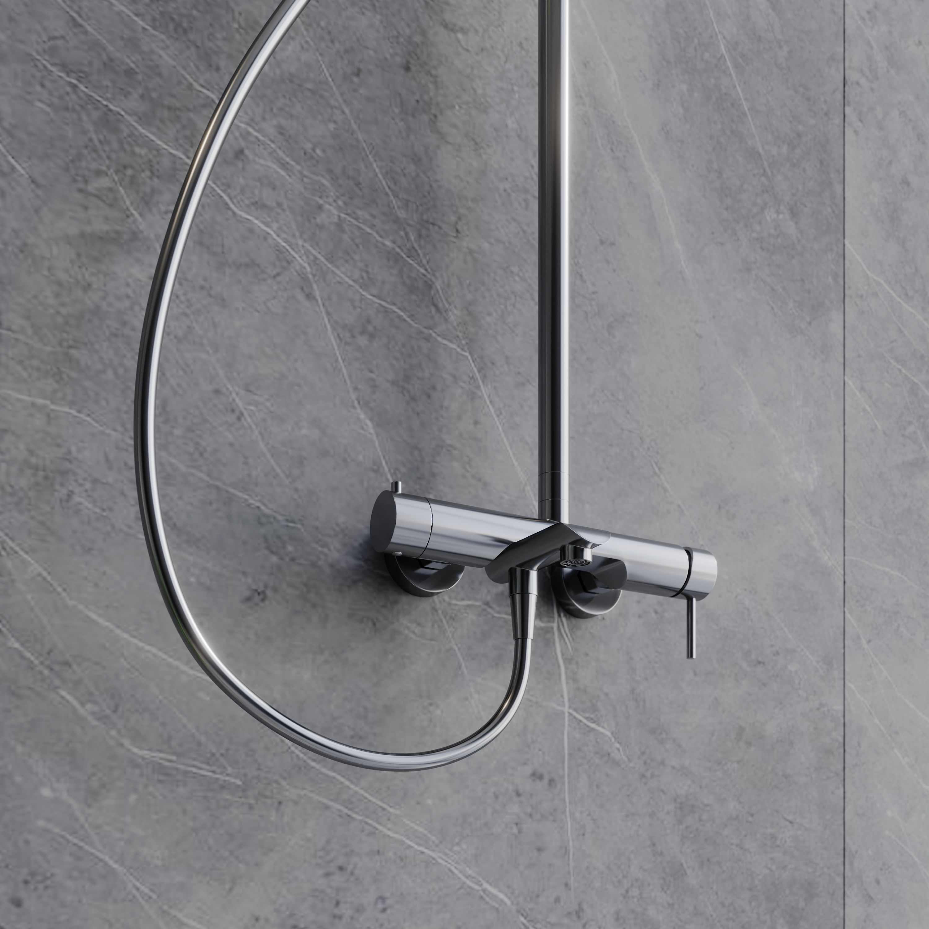 Монтаж стойки осуществляется настенным способом, что делает её универсальной для установки в любой ванной комнате. Корпус изготовлен из высококачественной латуни, покрытой хромированным глянцевым слоем, что обеспечивает не только привлекательный внешний вид, но и защиту от коррозии. Современная форма в сочетании с хромовым цветом идеально впишется в любой интерьер, от минимализма до классики.
