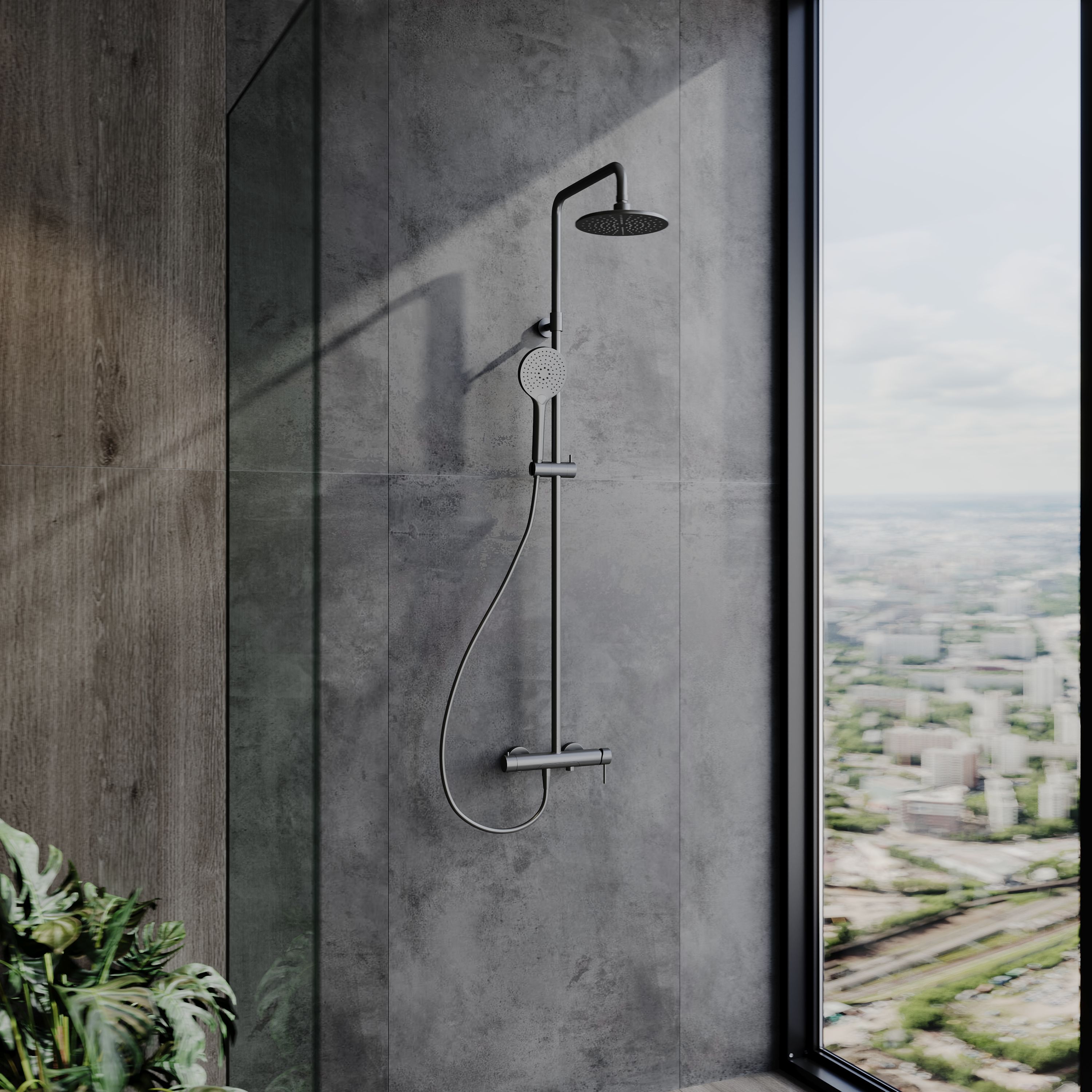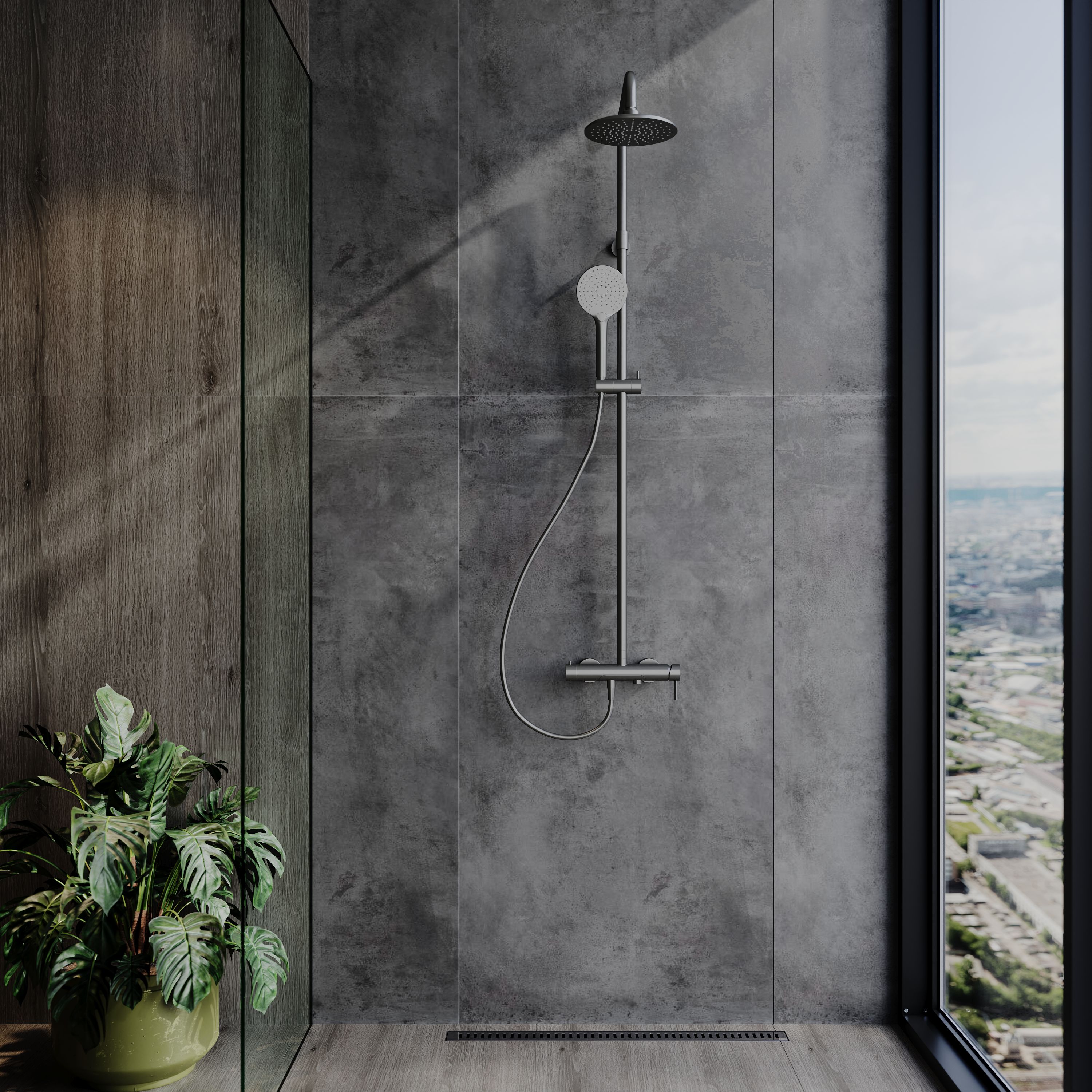 Душевая стойка AQUAme AQM8011GM — это воплощение итальянского дизайна и инженерной мысли в сфере сантехники. Созданная для тех, кто ценит комфорт, долговечность и эстетику, эта модель станет центральным элементом вашей ванной комнаты. Латунное изготовление с матовым покрытием цвета оружейной стали не только выглядит престижно, но и гарантирует долгий срок службы без потери внешнего вида.
