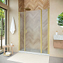 Это изделие идеально подходит для оформления душевых зон в современных ванных комнатах. Оно не только выполняет практическую функцию, но и становится стильным акцентом, подчеркивающим индивидуальность интерьера. Душевая дверь в нишу с матовым золотым профилем и стеклом шиншилла – это сочетание элегантности, надежности и функциональности.