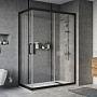 Душевой уголок с черным матовым профилем представляет собой стильное и функциональное решение для обустройства ванной комнаты. Изделие выполнено из качественных материалов, обеспечивающих долговечность и устойчивость к влаге.