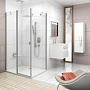 Прозрачное исполнение стекол создает ощущение простора и света в ванной комнате, визуально увеличивая ее пространство. Сатинированная отделка профиля добавляет изысканности и подчеркивает современный стиль. Уголок легко устанавливается и подходит для различных планировок.