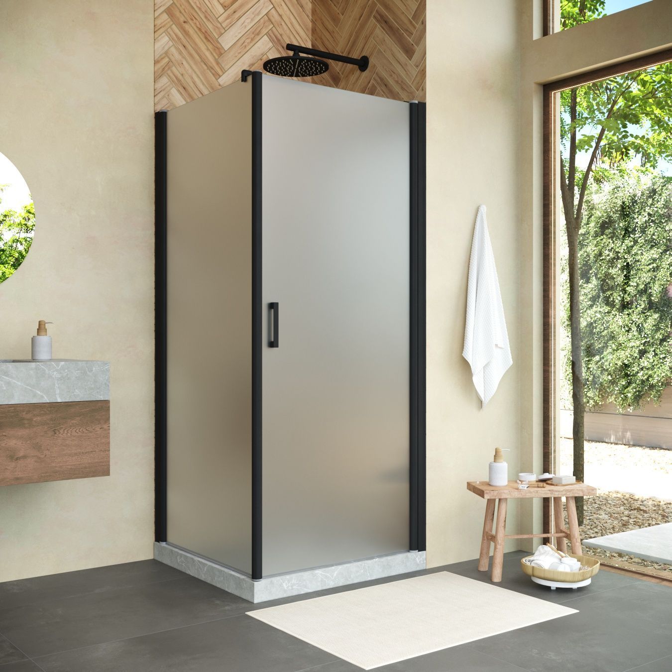Душевой уголок Vegas Glass EP-Fis NOVO h2000 80*90 02М 10 L профиль черный матовый, стекло сатин