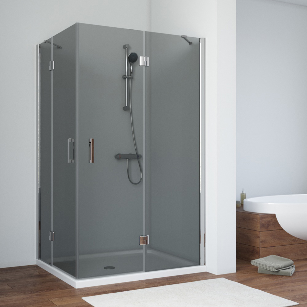 Душевой уголок Vegas Glass AFA-F TUR NOVO h1890 120*90 08 07 R, профиль глянцевый хром, стекло графит