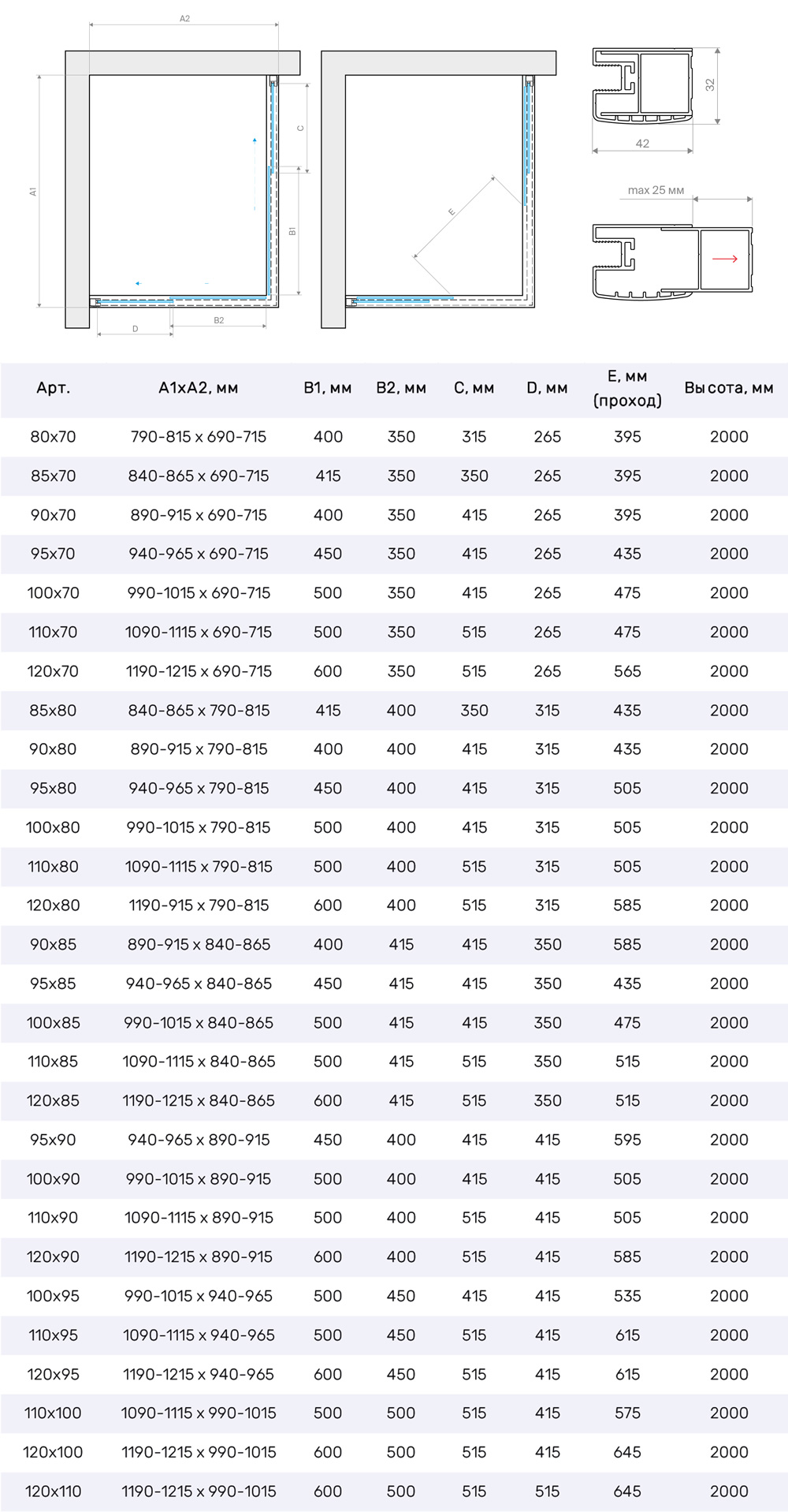 • Конструкция дверей: раздвижная