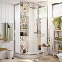 Душевой уголок оснащен прозрачными стеклянными дверями, которые обеспечивают свободный доступ в душевую зону и создают ощущение простора. Стекло выполнено из закаленного материала, что гарантирует безопасность и прочность.