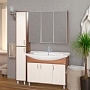 Нет в наличииГарнитур для ванной Misty Лада 105 – массивная вместительная мебель, которая подойдет для классических интерьеров. Теплый древесный оттенок интересно сочетается с белоснежными дверцами на фасадах. Элегантность дизайна подчеркивают хромированные ручки дугообразной формы. Тумба характеризуется прямой конструкцией с распашными дверцами, где расположены четыре отсека для хранения. В навесном шкафчике полки спрятаны за тремя зеркальными створками. Длинная фаянсовая раковина сделает ежедневные гигиенические процедуры комфортными.
