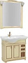 Комплект мебели для ванной комнаты в классическом стиле представлен напольной тумбой с оригинальным декором и массивным навесным зеркалом. Нейтральные цвета и натуральные оттенки дерева создают элегантный, сдержанный образ. Необычный декор, подчеркивающий геометрическую стройность и правильность композиции, отражает вдохновение дизайнера — античность с ее идеальными пропорциями стала прообразом для создания этого современного осмысления классики. Для хранения банных принадлежностей в тумбе предусмотрено два больших отделения с распашными дверцами и три компактных ящика.