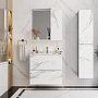 Благодаря подвесному креплению мебель визуально увеличивает пространство ванной комнаты, придавая ей легкость и современный вид. Прочная конструкция обеспечивает долговечность и устойчивость к влаге, что особенно важно для помещений с повышенной влажностью.