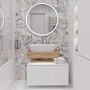 Столешница для ванной комнаты выполнена из высококачественного дуба французского производства, что гарантирует долговечность и эстетическую привлекательность. Натуральное дерево с благородной текстурой создает уютную атмосферу, а аккуратная обработка поверхности обеспечивает устойчивость к влаге и перепадам температур.