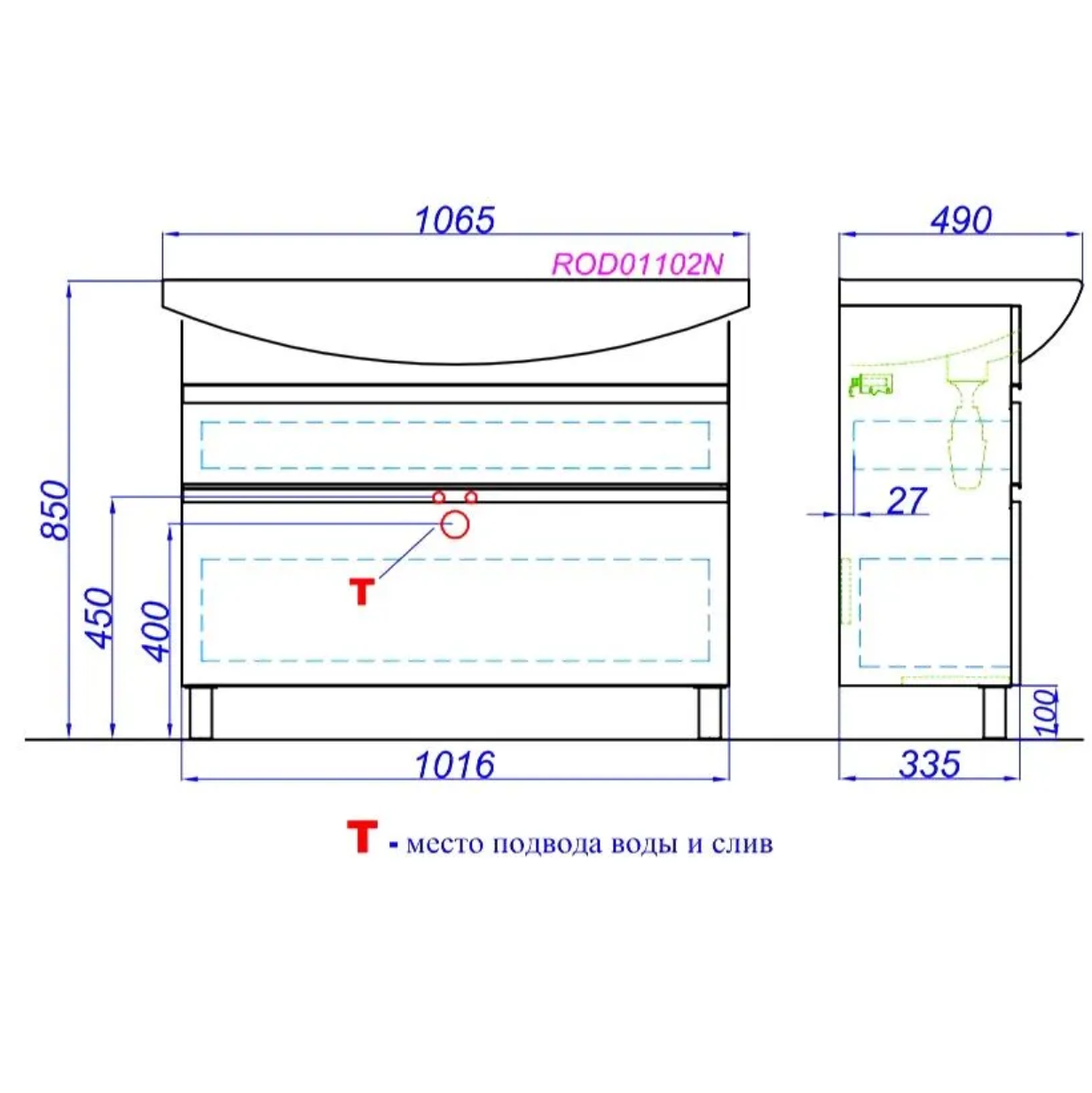 Тумба с раковиной Aqwella Rodos 105 напольная