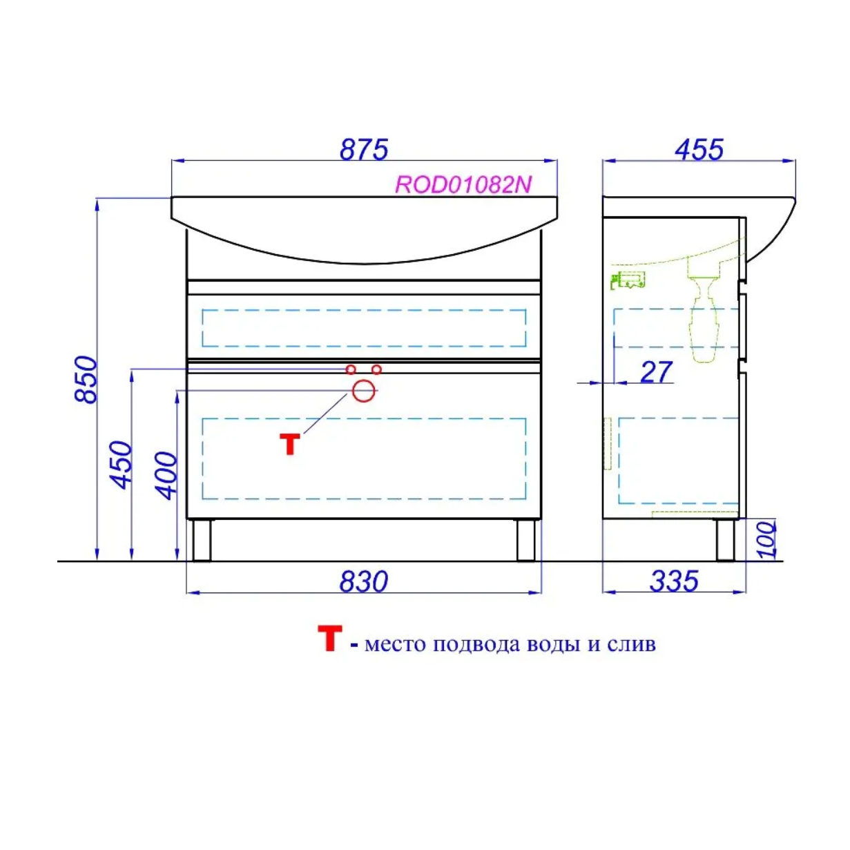 Тумба с раковиной Aqwella Rodos 85 напольная
