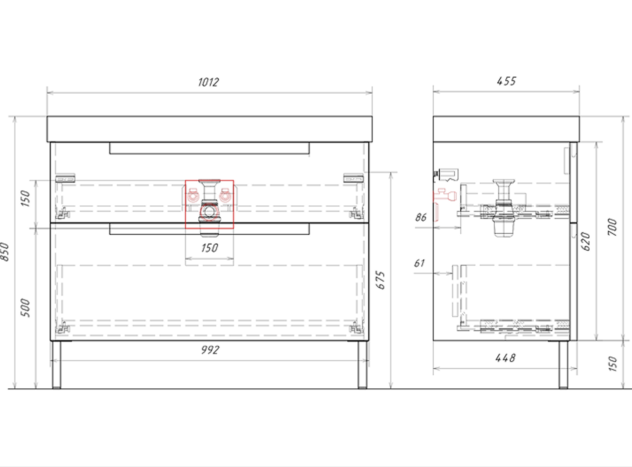 | 101.5 | белый матовый | хром | с ящиками | Перейти | |