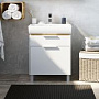Тумба с раковиной Stworki «Дублин 60» – один из самых удачных представителей скандинавского стиля. В дизайне модели используются только два цвета: белый и светлое дерево. Матовые удобные для захвата ручки не создают контраста с лаконичным фасадом. Тумба изготовлена из влагостойкой ДСП и обработана глянцевым ламинатом по технологии УФ-отверждения. Мебель монтируется на стену с опорой на декоративные прямоугольные ножки. Для хранения гигиенических принадлежностей и бытовой химии предусмотрены 2 ящика с доводчиками. Верхний сконструирован таким образом, что не мешает размещению сифона. Тумба Stworki «Дублин 60» дополнена прямоугольной фаянсовой раковиной бренда Santek.