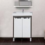 Конструкция оснащена двумя удобными дверцами, что позволяет разместить внутри все необходимые средства гигиены и бытовую химию. Дверцы выполнены в стильном венге-оттенке, который придает мебели благородный и лаконичный вид.