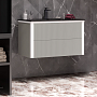 Тумба оснащена раковиной, что делает ее готовым решением для обустройства ванной комнаты. Просторный ящик для хранения позволяет разместить все необходимые средства гигиены и косметику. Конструкция предусматривает удобный доступ к содержимому, что делает использование изделия максимально комфортным.