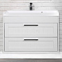 Тумба оснащена удобными полками и ящиками, которые позволяют разместить все необходимые предметы гигиены и косметики. Подвесной монтаж освобождает пространство под раковиной, создавая ощущение легкости и визуально расширяя помещение.