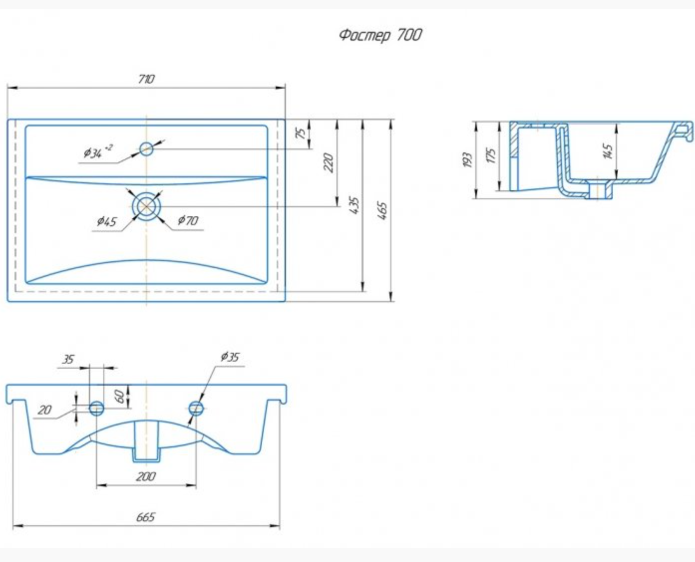 Диаметр слива, см