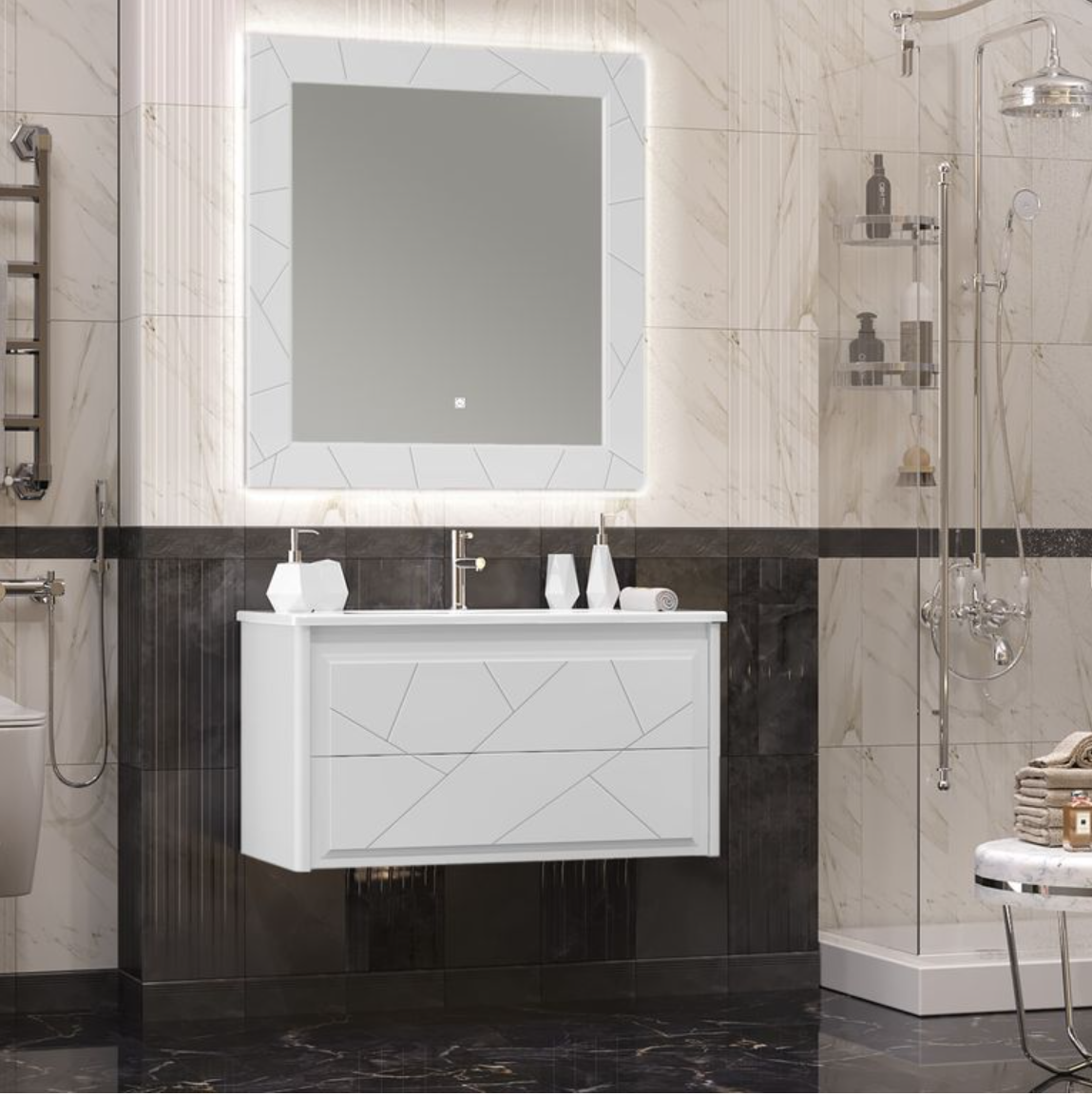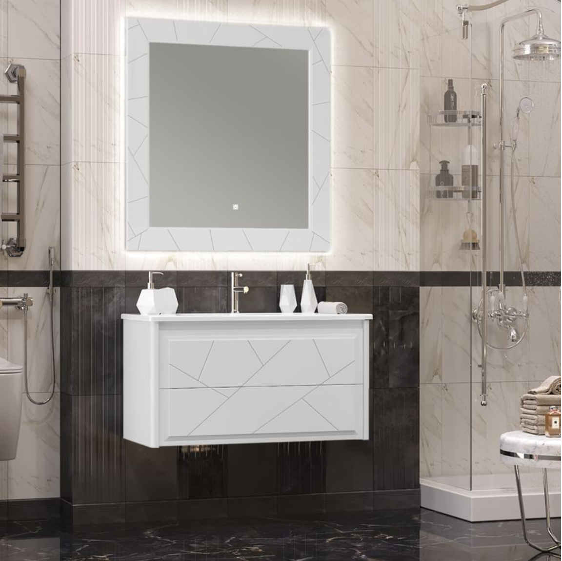 Эта модель идеально подойдёт для семей, которые ценят порядок и комфорт, для владельцев небольших ванных комнат, которые хотят визуально расширить пространство, а также для дизайнеров, создающих современные интерьеры с акцентом на функциональность. Если вы хотите, чтобы ваша ванная стала местом, где приятно начинать и заканчивать день — обратите внимание на эту тумбу.