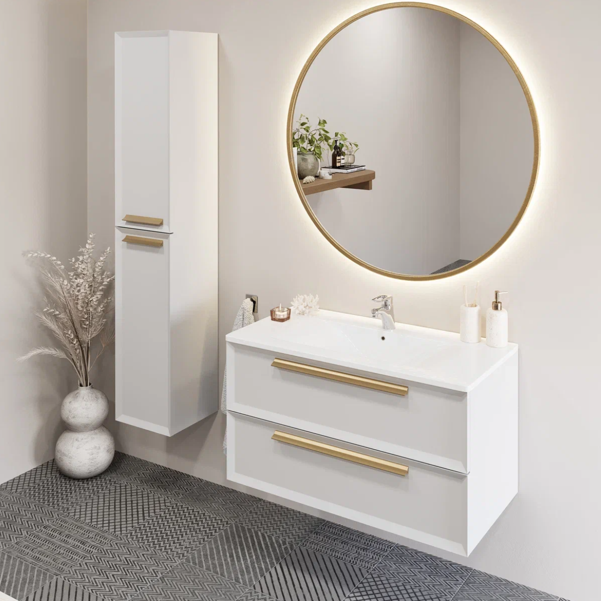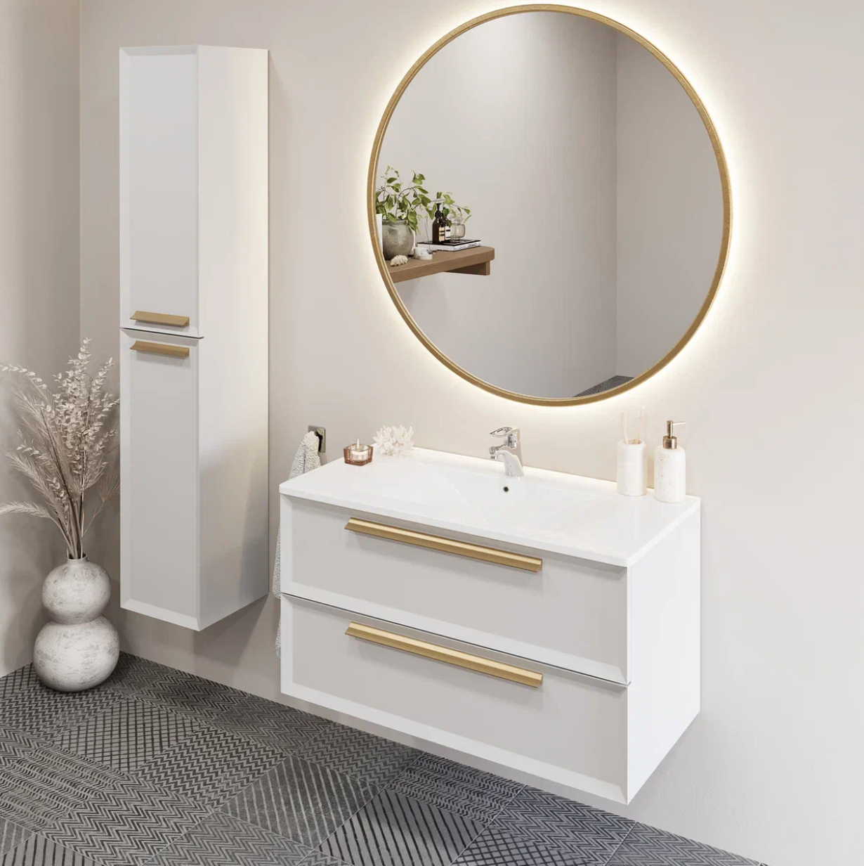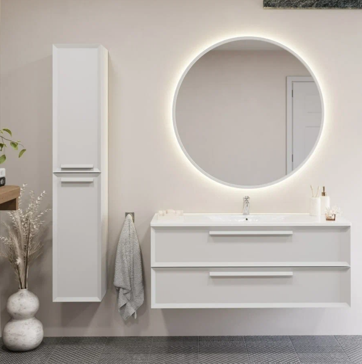 Тумба оснащена вместительными ящиками, которые помогут навести порядок в ваших средствах гигиены и косметике. Благодаря универсальной ориентации, модель легко впишется в любую планировку ванной комнаты. Вы можете выбрать цвет фурнитуры из нескольких вариантов: белый, золотой, хром или чёрный, чтобы подчеркнуть ваш индивидуальный стиль.