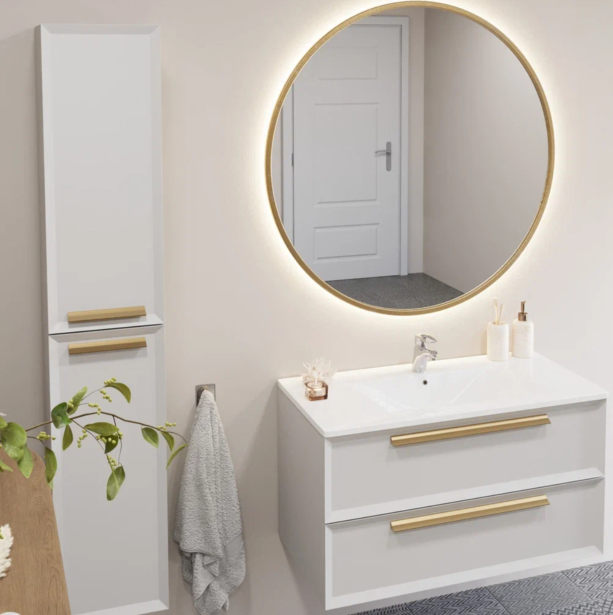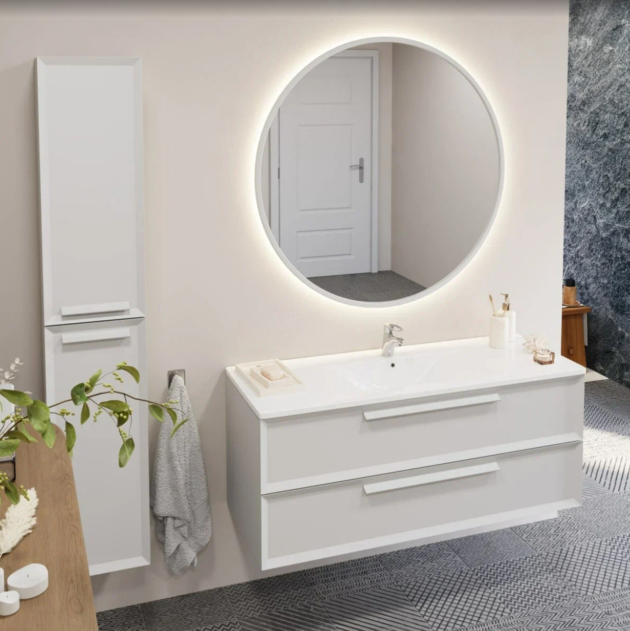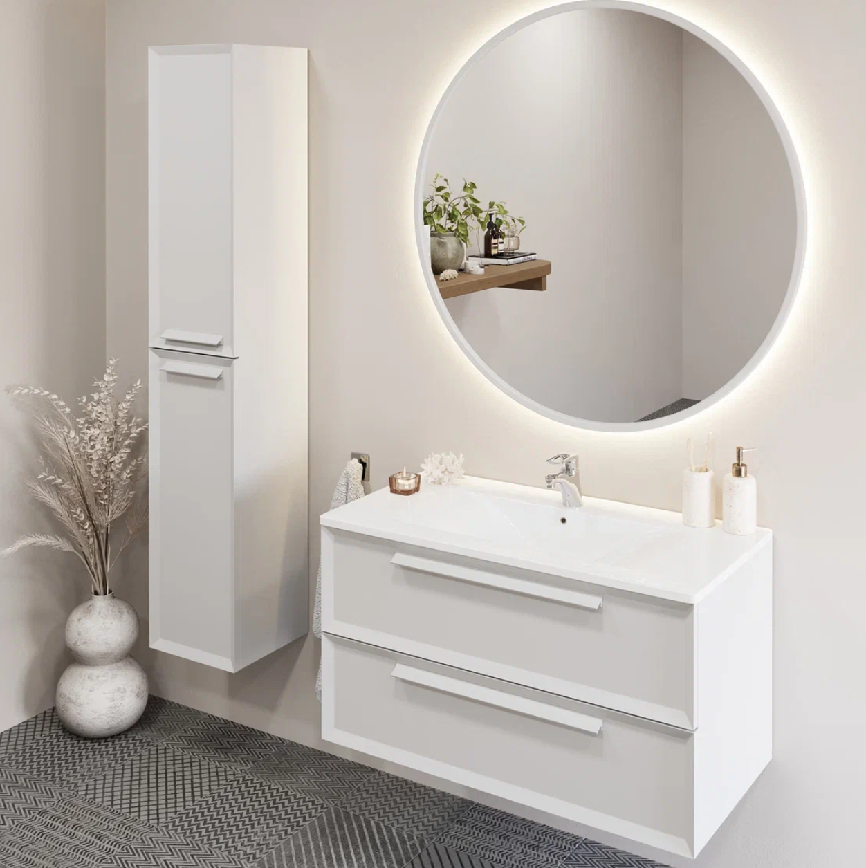 Тумба оснащена вместительными ящиками, которые помогут навести порядок в ваших средствах гигиены и косметике. Благодаря универсальной ориентации, модель легко впишется в любую планировку ванной комнаты. Вы можете выбрать цвет фурнитуры из нескольких вариантов: белый, золотой, хром или чёрный, чтобы подчеркнуть ваш индивидуальный стиль.