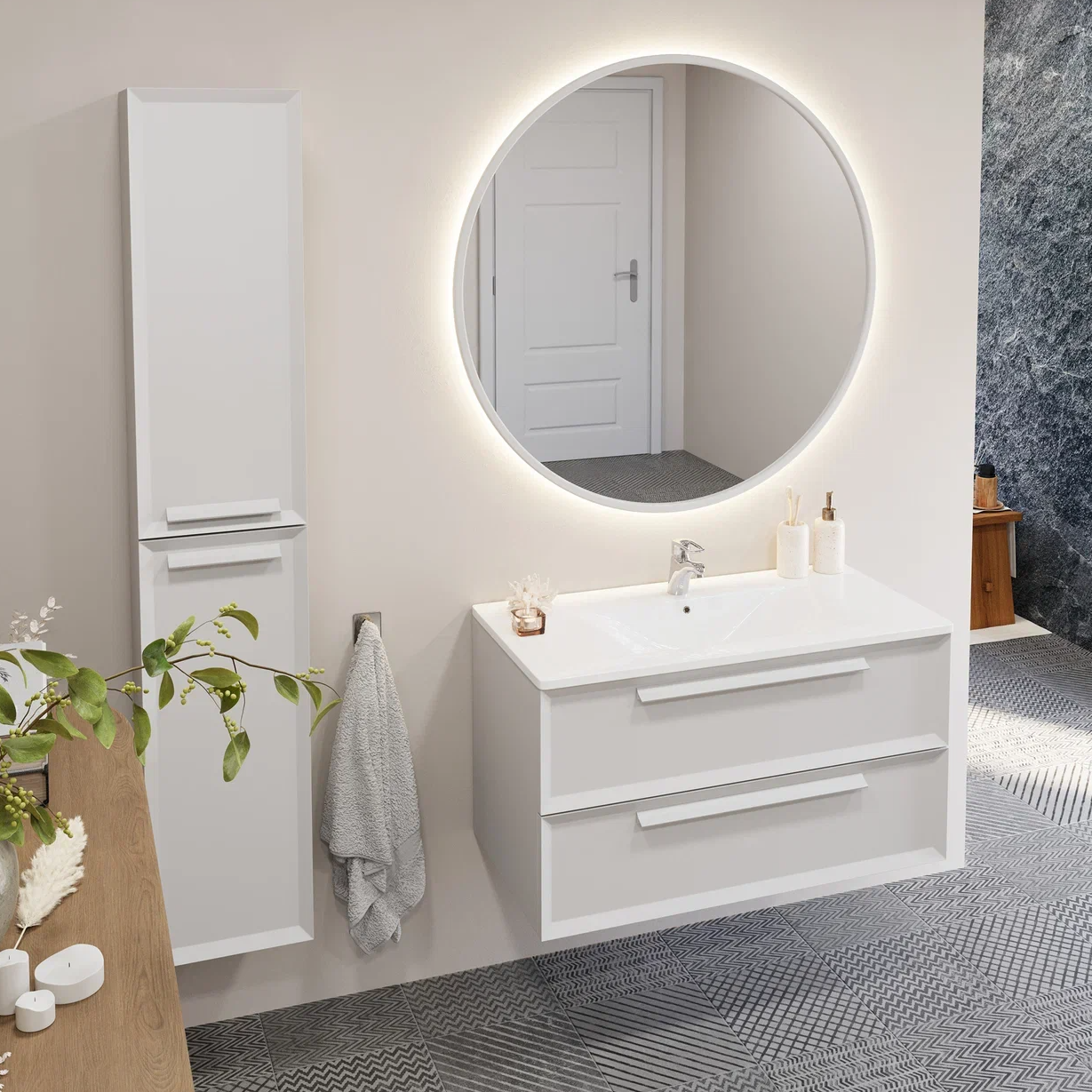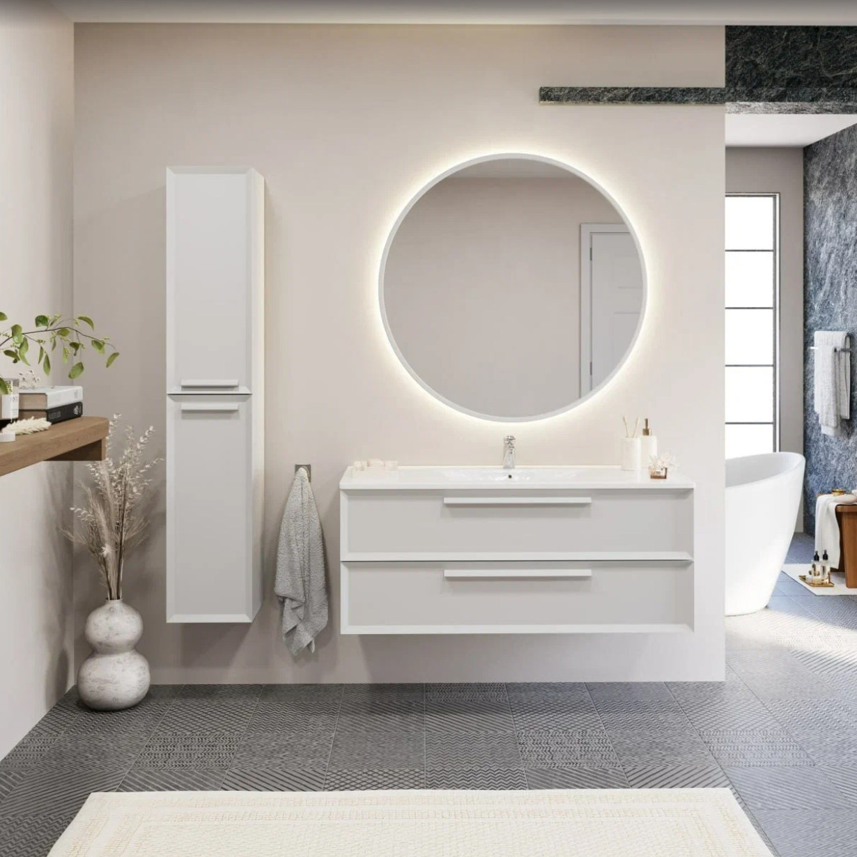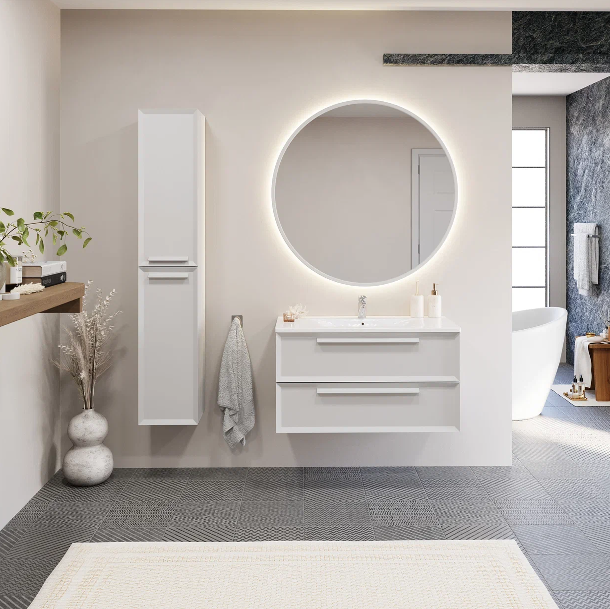 Одним из ключевых преимуществ модели является её подвесной монтаж. Это не только облегчает уборку пола в ванной, но и создаёт ощущение простора и лёгкости. Высота 50 см идеально подходит для комфортного использования людьми разного роста. Встроенная система доводчиков обеспечивает плавное и бесшумное закрывание ящиков — больше никаких хлопков и стуков по утрам или вечерам.