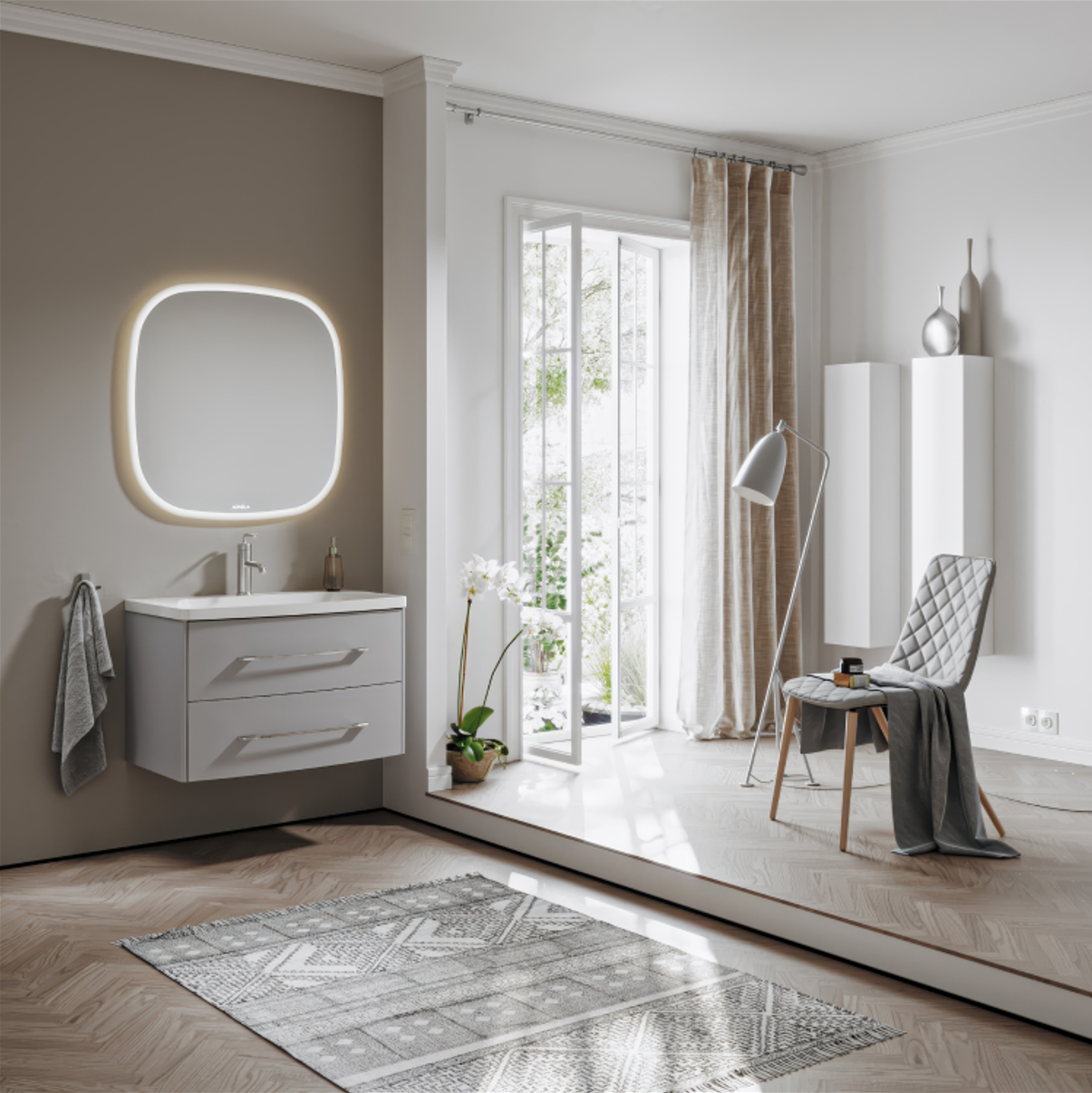 Тумба с раковиной Aqwella 5 stars Neringa 80 серый туман