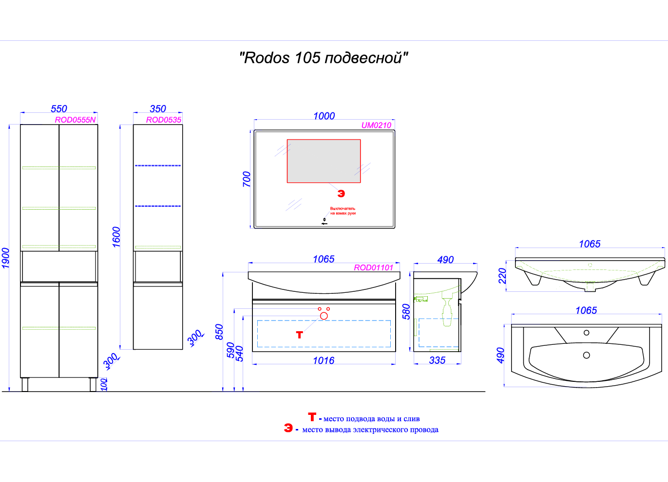 Тумба с раковиной Aqwella Rodos 105 подвесная по цене 22500 рублей.
