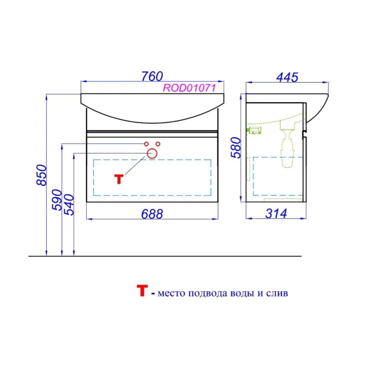 Тумба с раковиной Aqwella Rodos 75 подвесная по цене 16500 рублей.