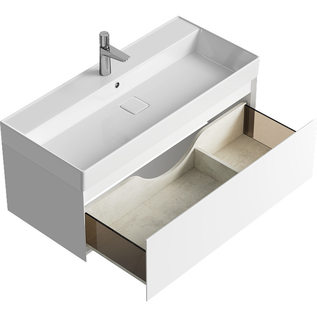 | 100 | белый матовый | хром | с ящиками |