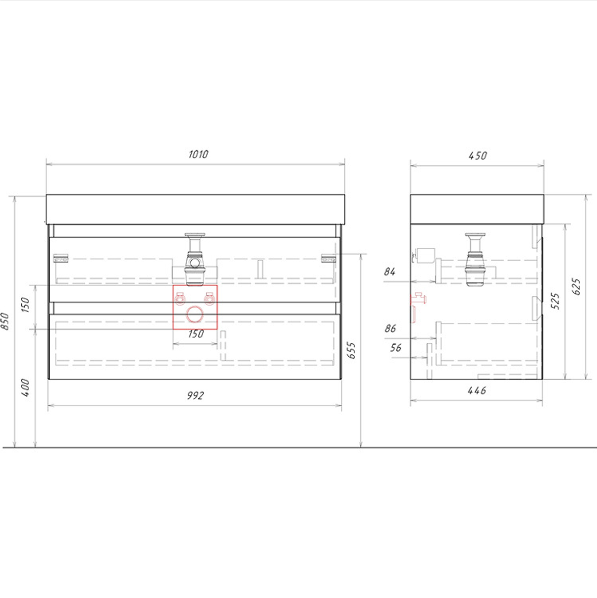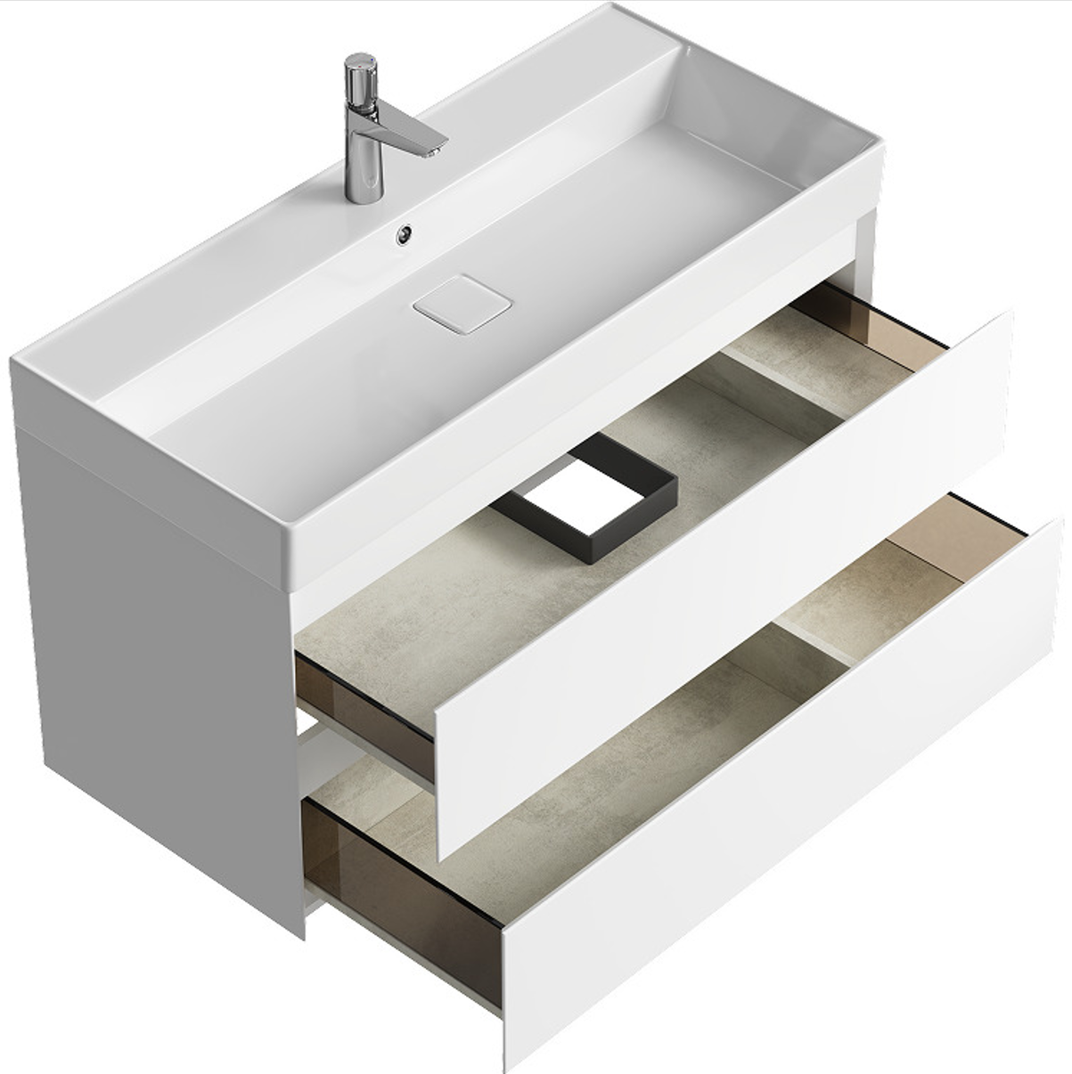 | 100 | белый матовый | хром | с ящиками |