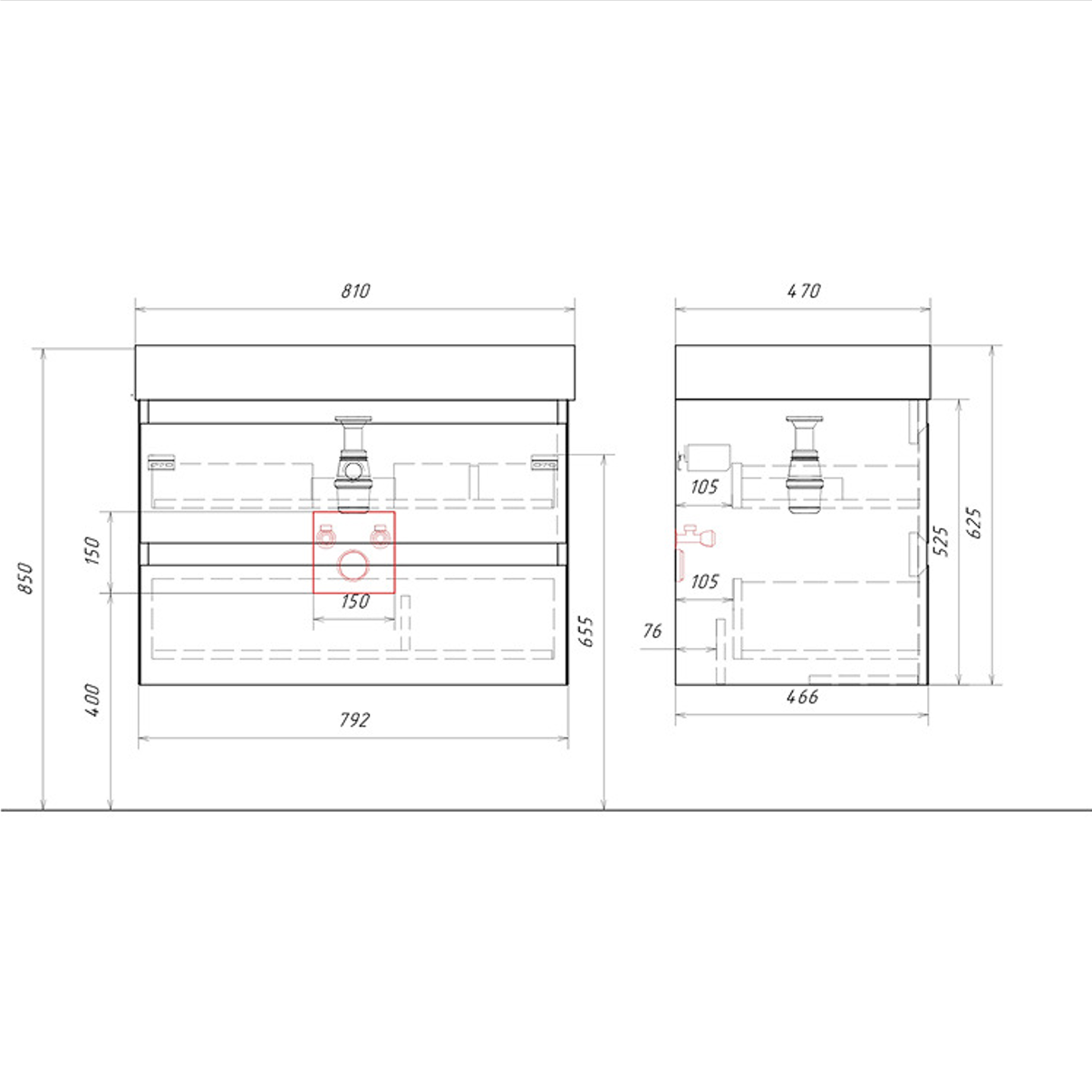Тумба с раковиной Aqwella 5 stars Geometria 80 подвесная, 2 ящика, морская дюна