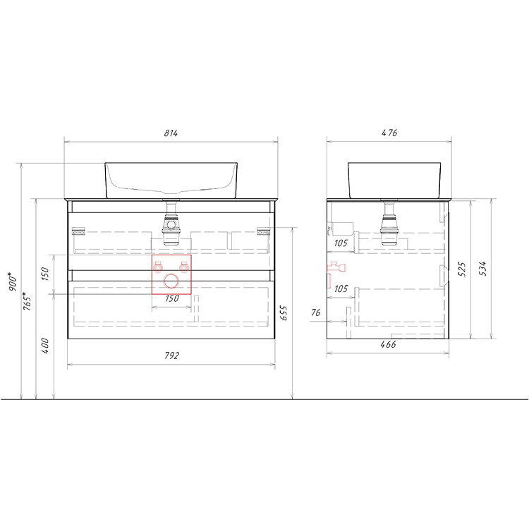 | 65.5 | белый матовый | хром | с ящиками | Перейти | |