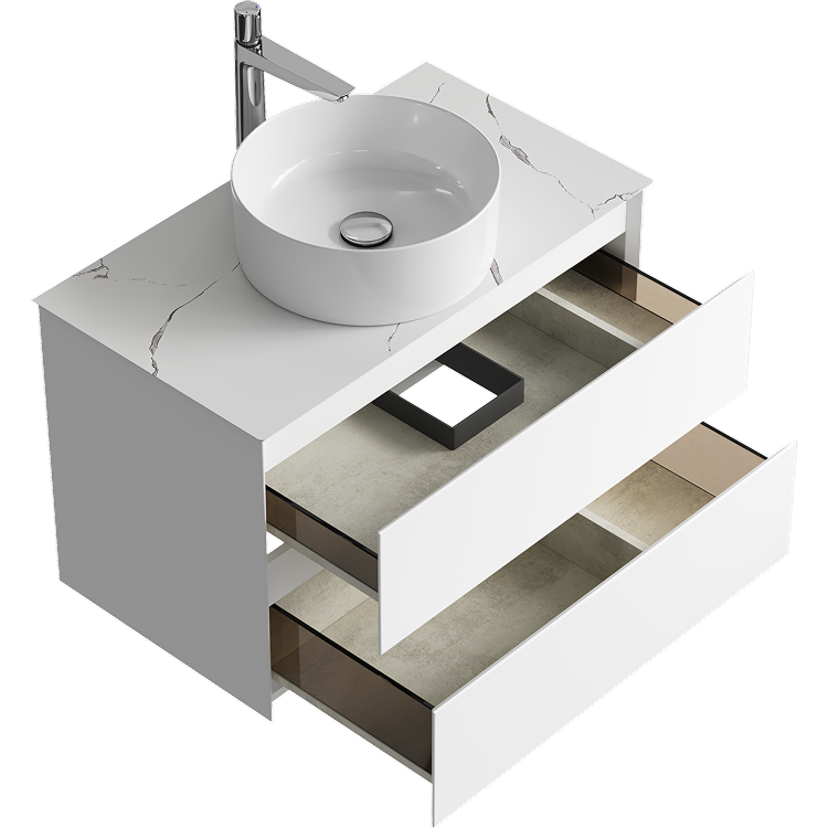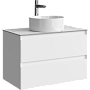 Тумба с раковиной Aqwella 5 stars Geometria 80 подвесная 2 ящика, белая, столешница белый мрамор