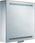 Данная модель шкафа оснащена одной поднимающейся дверцей с зеркалом с двух сторон. Выключатель освещения расположен снаружи. Боковые грани имеют также зеркальное покрытие, что делает зеркальный шкаф еще более светлым, а помещение просторным. Подсветка люминесцентными лампами 2х14 Вт Т5.