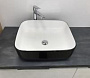 Благодаря накладной конструкции, раковина просто монтируется на любую столешницу или тумбу, что позволяет легко интегрировать её в существующий интерьер. Это решение подходит как для классических, так и для современных стилей ванных комнат.